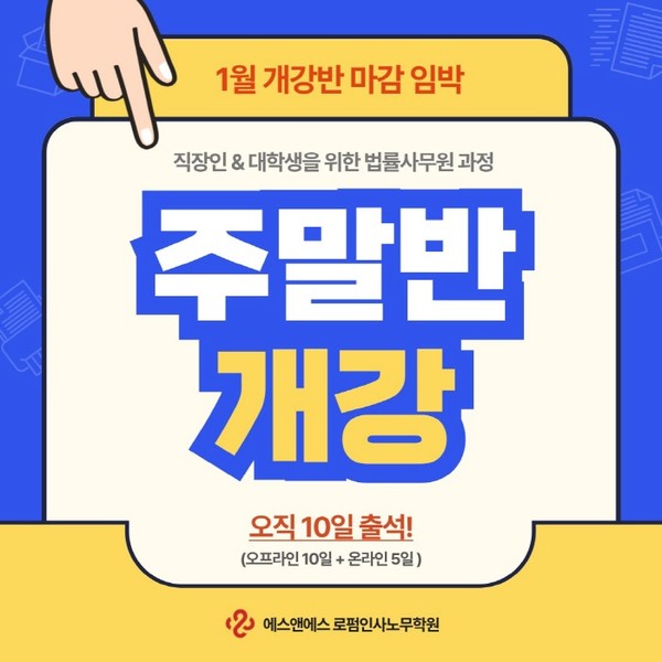 S&S 로펌인사노무학원이 2025년부터 법률사무원 주말반을 개강한다고 7일 밝혔다.