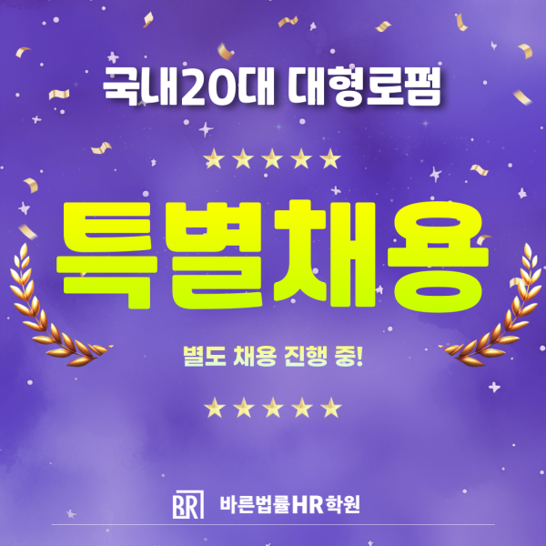 법률사무원 취업 전문 교육기관인 바른법률HR학원이 국내 20대 대형 로펌 특별채용을 실시한다고 28일 밝혔다.