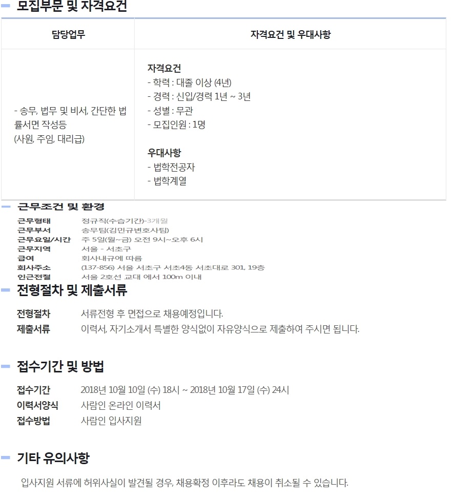 법무법인 조율과 함께 성장할 진취적인 사원모집 페이지 정보 작성자 에스앤에스 댓글 0건 조회 703회 작성일 18-10-12 00:00 목록 본문 법무법인 조율과 함께 성장할 진취적인 사원모집 관련링크 http://www.saramin.co.kr/zf_user/jobs/relay/view?view_type=search&rec_… 564회 연결 이전글법무법인 태성 송무직원 채용 19.01.01 다음글법무법인(유한) 바른 송무지원팀 경력 및 신입사원 모집 18.10.12 댓글 0 댓글목록 등록된 댓글이 없습니다.