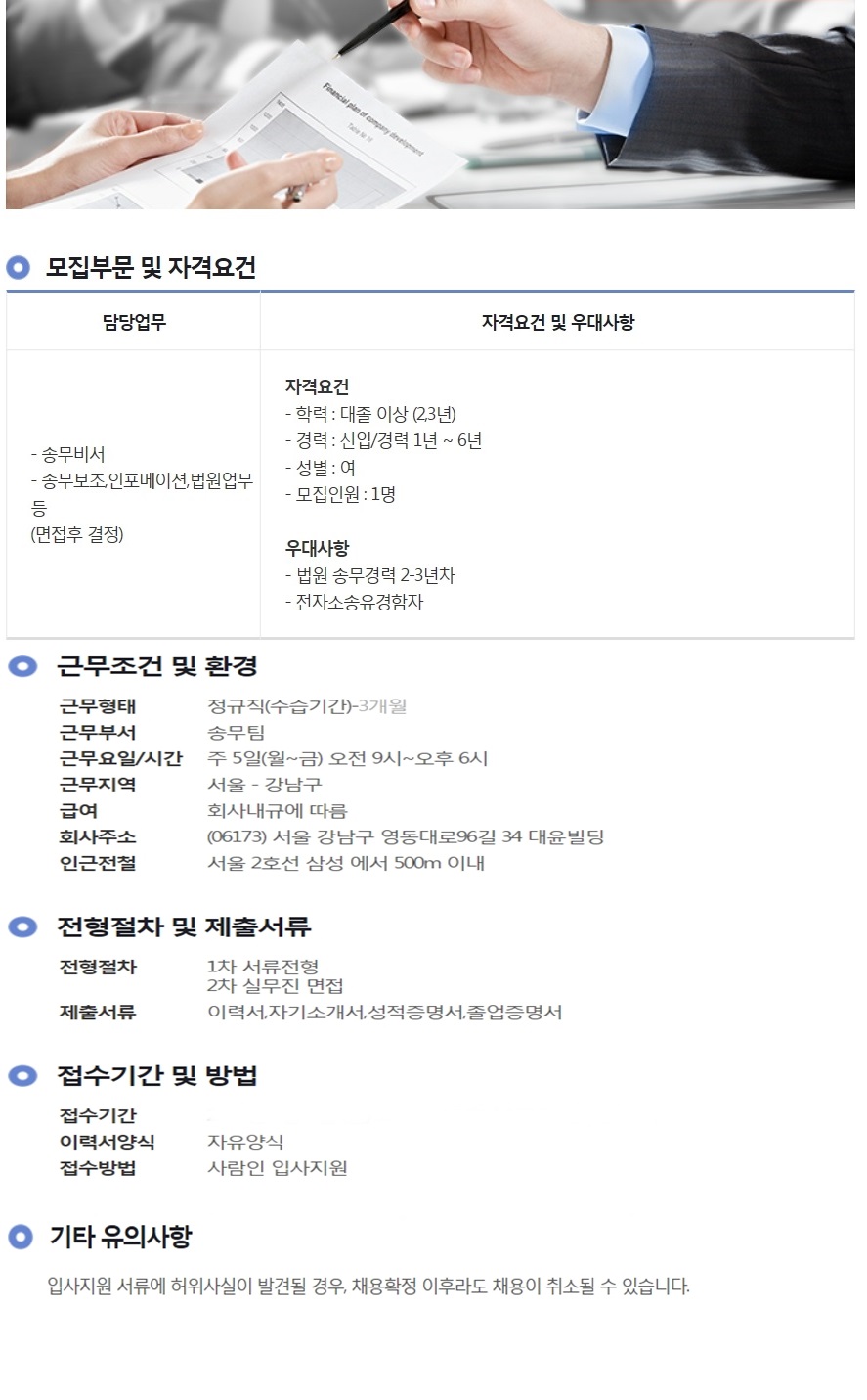 [법무법인 퍼스트] 로펌 송무비서 신입/경력직 채용공고